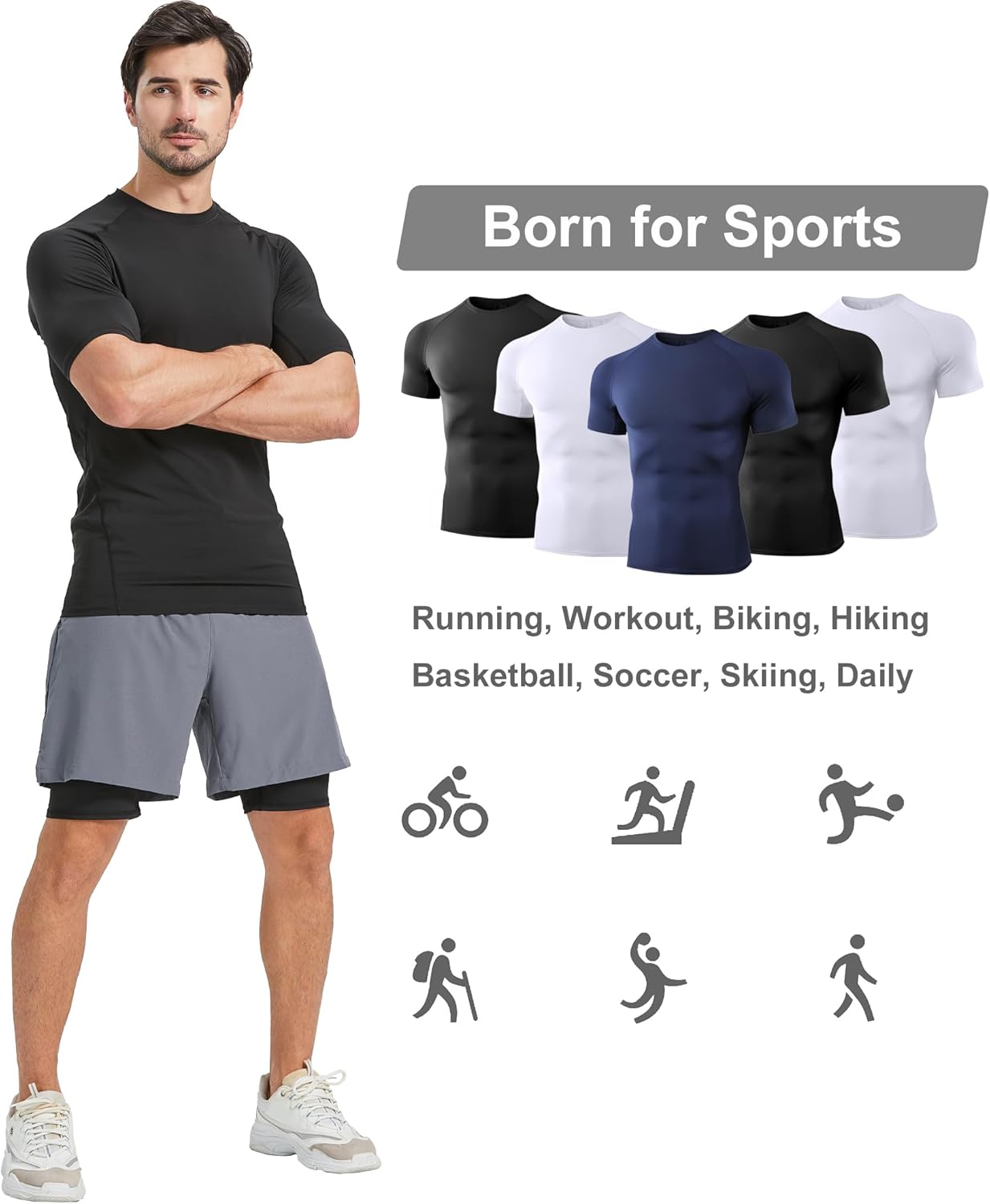 Dalavch 5 Pack Menu2019s Compression Shirts Short Sleeve Cool Dry Sports Athletic Workout Base Layer Undershirt T-Shirt Tops