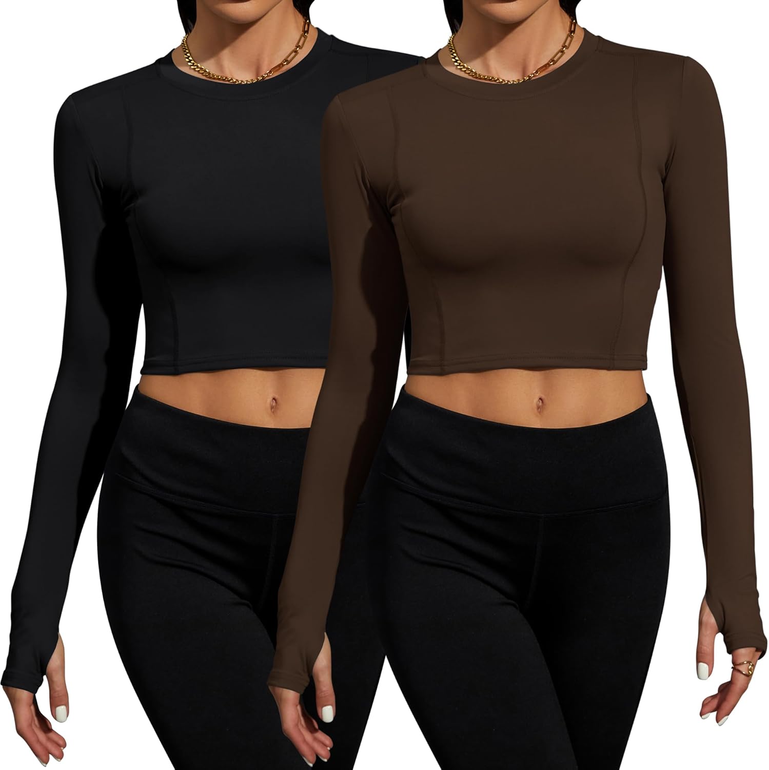 UNIANKIYA Open Back Workout Tops for Women Long Sleeve Cropped Athletic Clothes Gym Running Yoga Low Impact Sports T Shirts