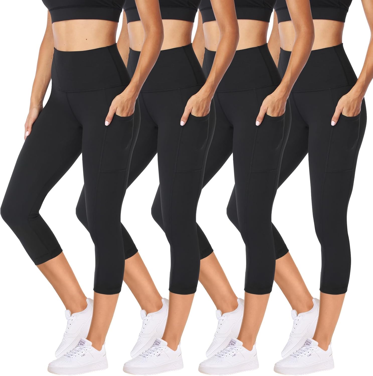 NexiEpoch 4 Pack Leggings for Women – High Waisted Tummy Control Soft Black Capri Yoga Pants with Pockets for Workout