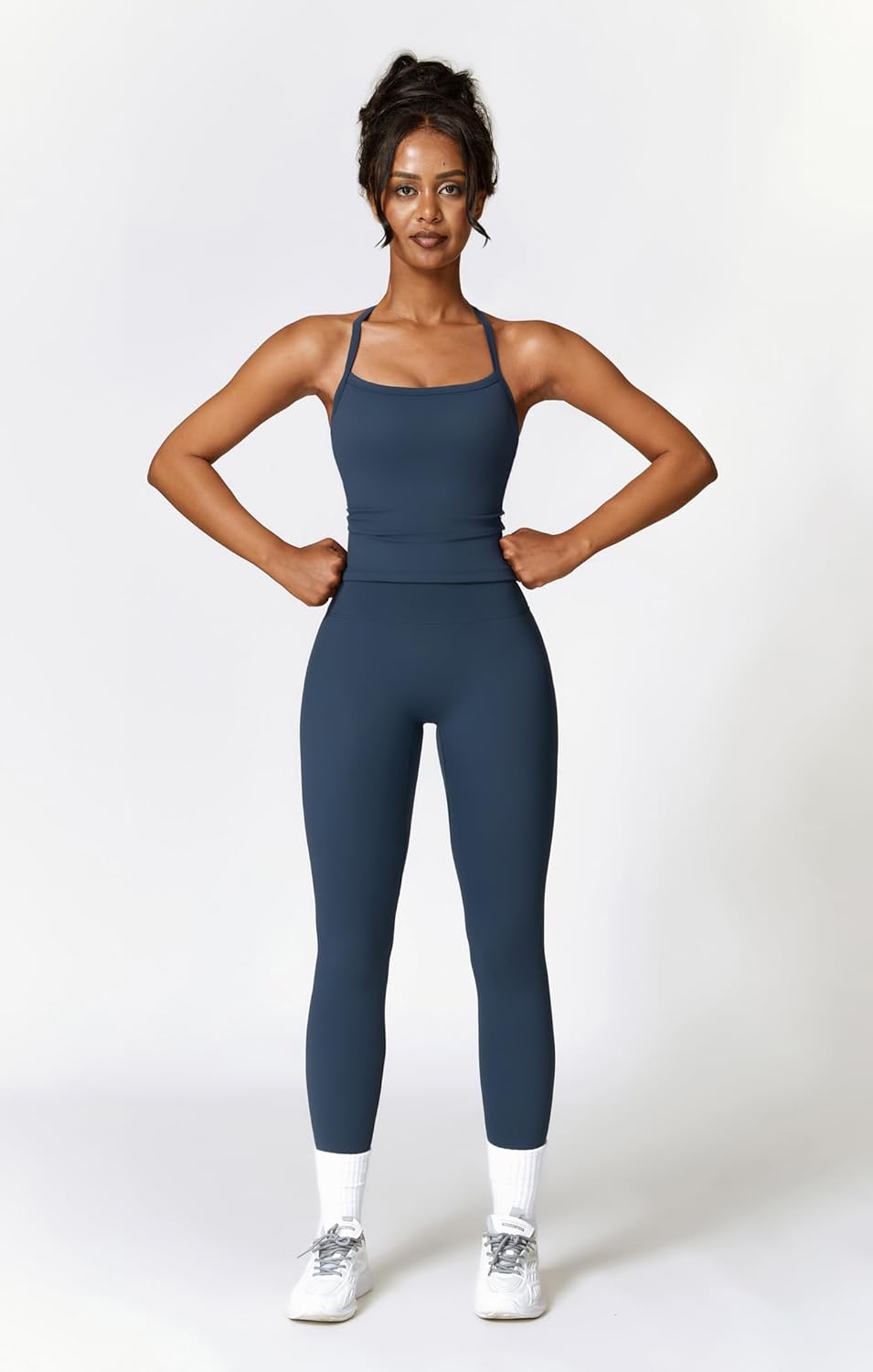 SUUKSESS 2 Piece Workout Sets for Women Long Sleeve Gym Sets Woman Butt Lifting Leggings Open Back Crop Tops