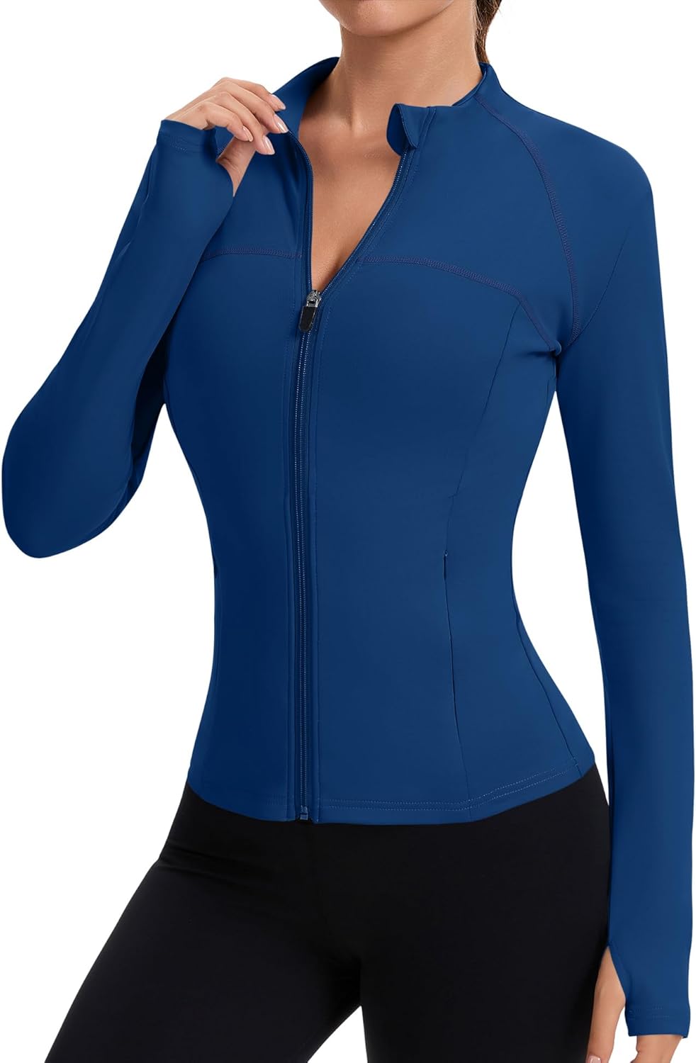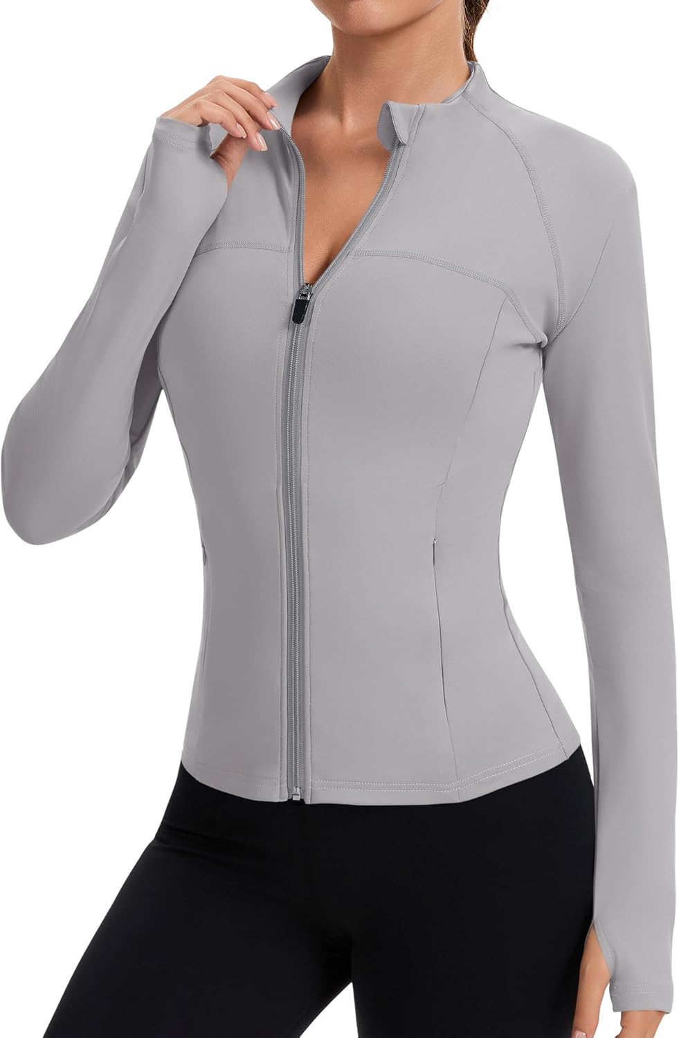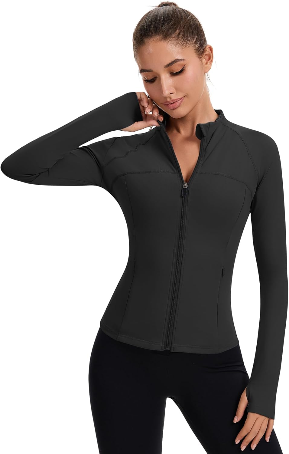 SUUKSESS Women 2 Piece Seamless Ribbed Workout Sets With Zip Up Jacket High Waisted Gym Yoga Leggings