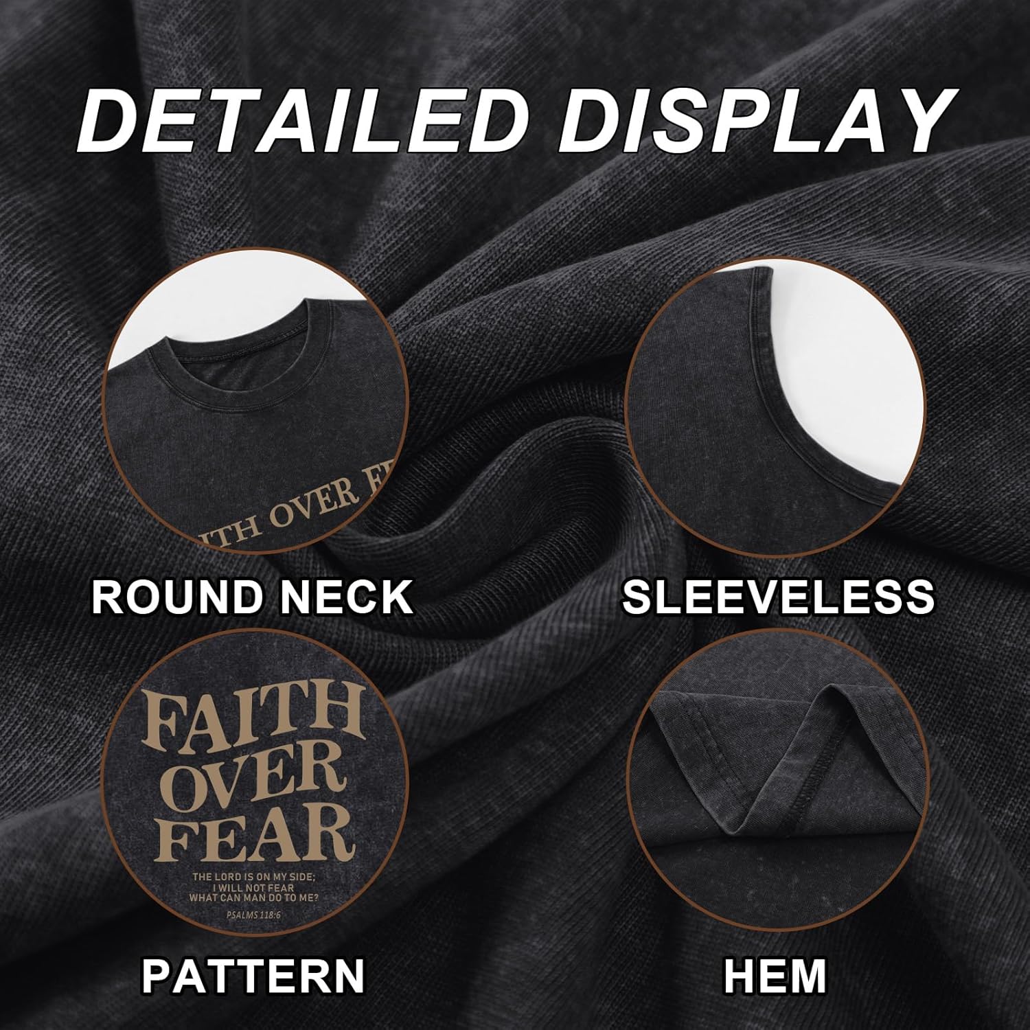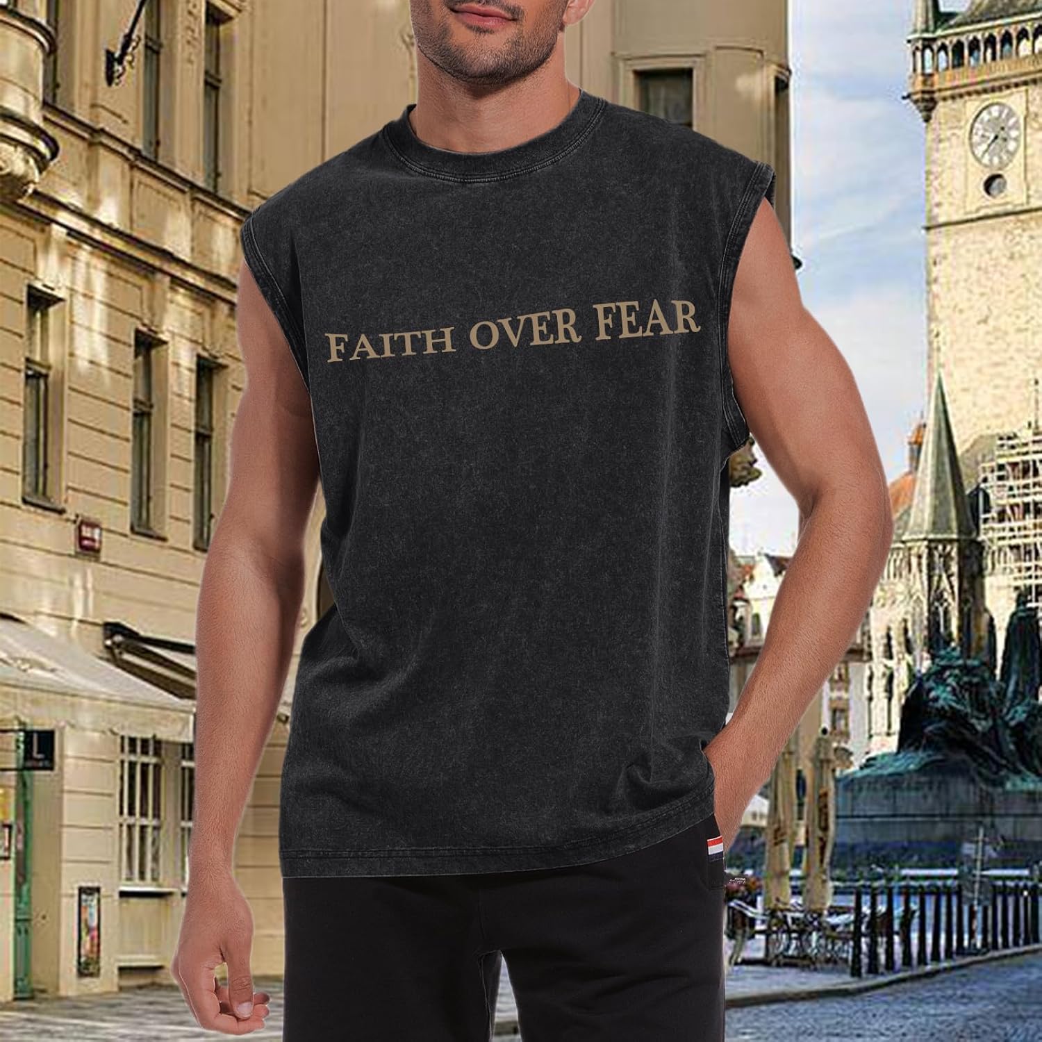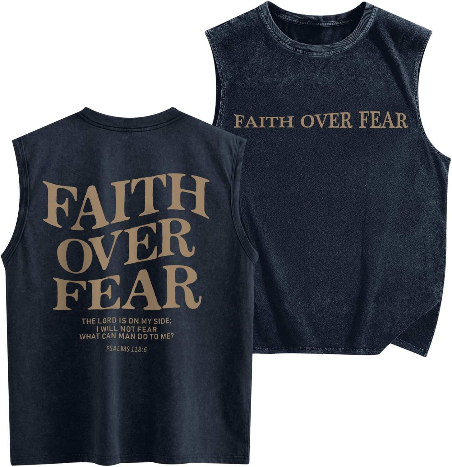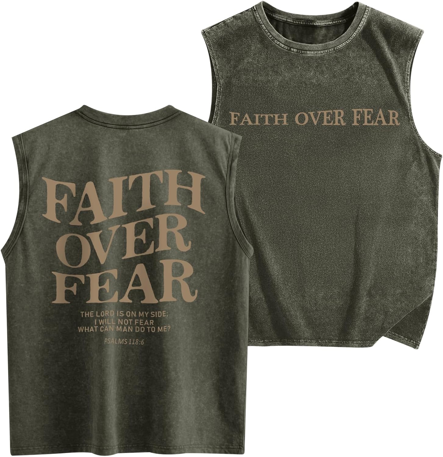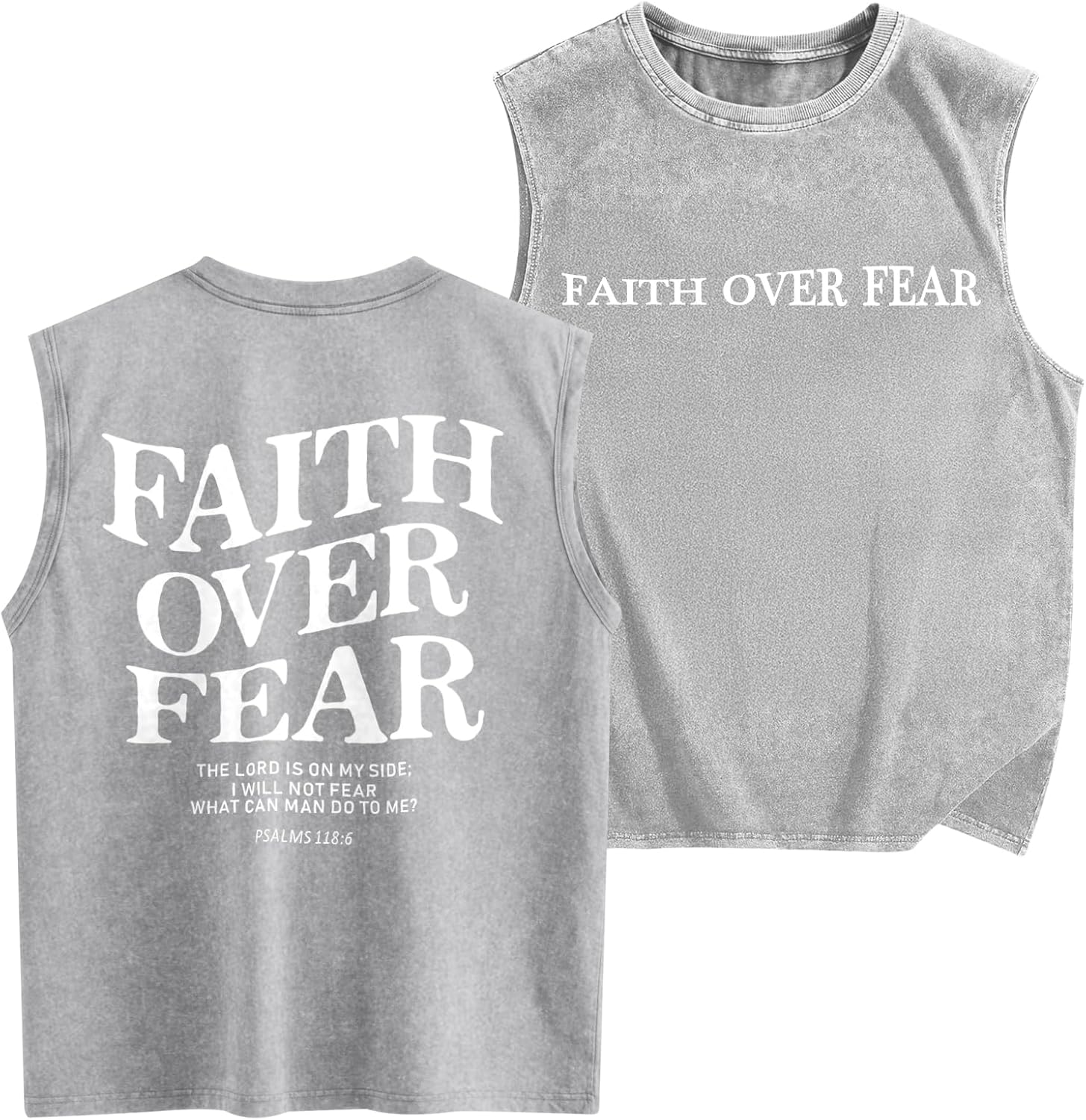 Weetiotio Mens Christian Sleeveless Shirts Faith Over Fear Graphic Tank Tops Gym Workout Acid Wash Tanks Cut Off Muscle Shirt