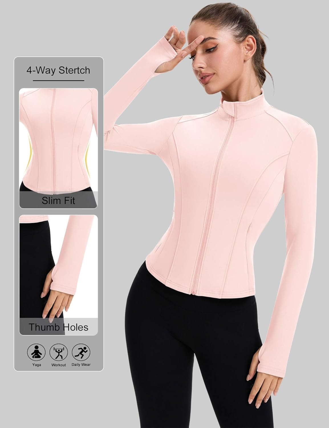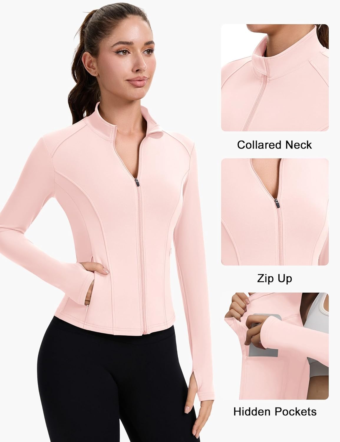 ZHENWEI Workout Jackets for Women Full Zip Up Cropped Athletic Long Sleeve Lightweight Slim Fit Running Tops with Pockets